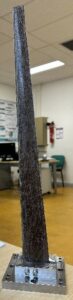 This blade prototype, manufactured from a bio-based composite, is part of a multi-scale investigation aimed at bridging the gap between damping behaviour at composite material scale structural scale (wind turbine blade). Following the identification and understanding of damping and stiffness mechanisms at the material level, this intermediate demonstrator enables the introduction of realistic structural effects, including geometry, assembly, boundary conditions, and aerodynamic effects. It therefore represents a key step in assessing whether the trends observed at the composite scale are preserved at the blade scale, where the global dynamic response is governed by the combined influence of material properties and structural effects.